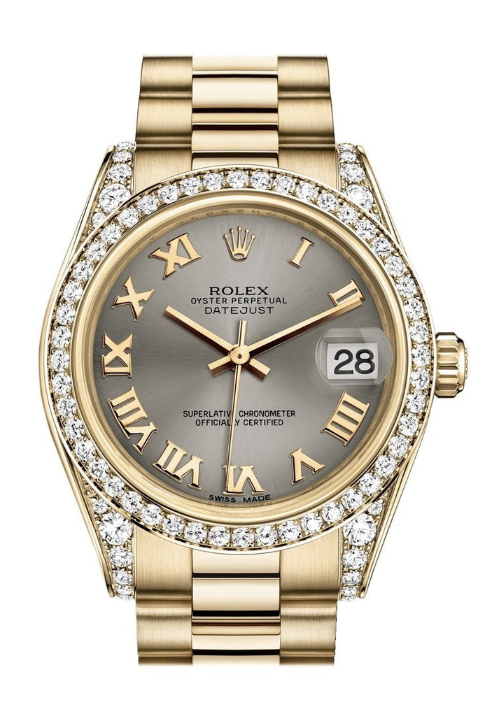 Rolex Datejust 31 White Roman Dial Diamond Bezel Lug 18K Yellow Gold President Ladies Watch 178158