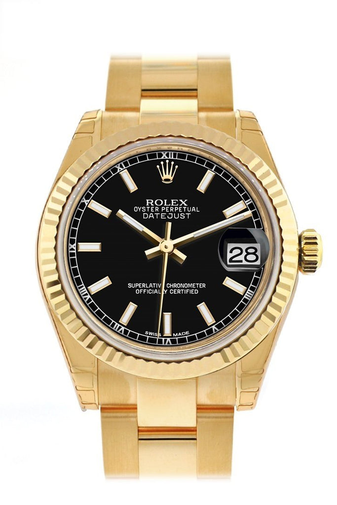 Rolex Datejust 31 Black Dial Fluted Bezel 18K Yellow Gold Ladies Watch 178278