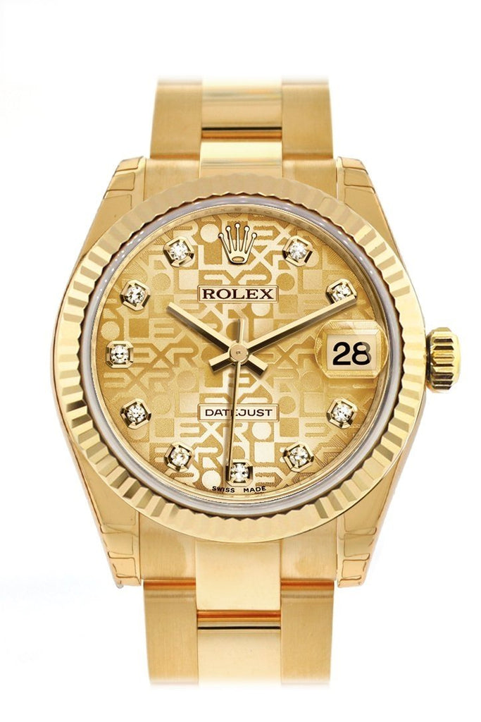 Rolex Datejust 31 Champagne Jubilee Diamond Dial Fluted Bezel 18K Yellow Gold Ladies Watch 178278