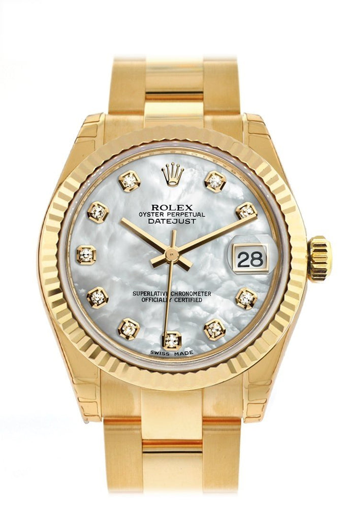 Rolex Datejust 31 White Mother of Pearl Diamond Dial Fluted Bezel 18K Yellow Gold Ladies Watch 178278