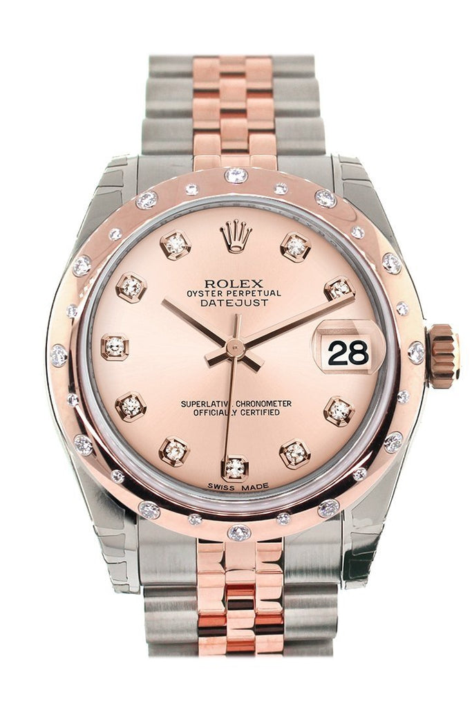 Rolex Datejust 31 White Diamond Dial Diamond Bezel 18K Rose Gold Two Tone Jubilee Ladies Watch 178341