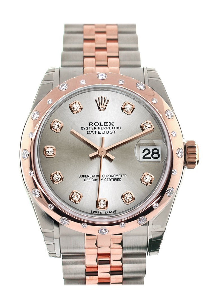 Rolex Datejust 31 Silver Diamond Dial Diamond Bezel 18K Rose Gold Two Tone Jubilee Ladies Watch 178341