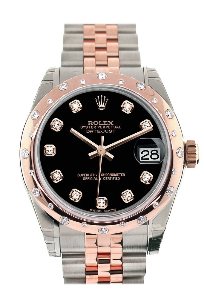 Rolex Datejust 31 Black Diamond Dial Diamond Bezel 18K Rose Gold Two Tone Jubilee Ladies Watch 178341