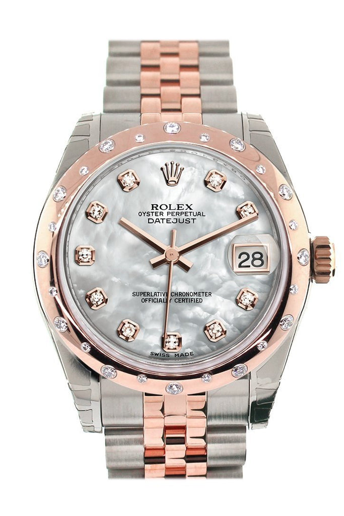 Rolex Datejust 31 White Mother of Pearl Roman Dial Diamond Bezel 18K Rose Gold Two Tone Jubilee Ladies Watch 178341