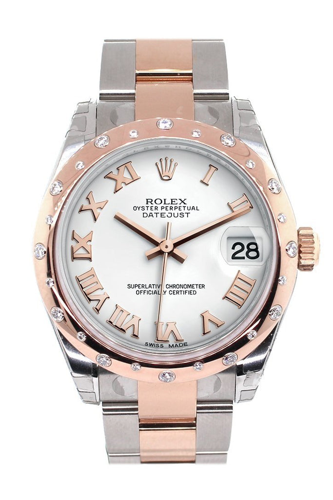 Rolex Datejust 31 White Roman Dial Diamond Bezel 18K Rose Gold Two Tone Ladies Watch 178341