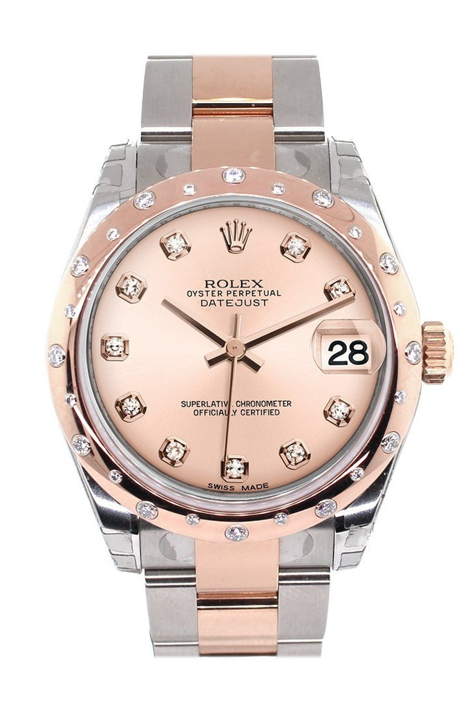 Rolex Datejust 31 Pink Diamond Dial Diamond Bezel 18K Rose Gold Two Tone Ladies Watch 178341
