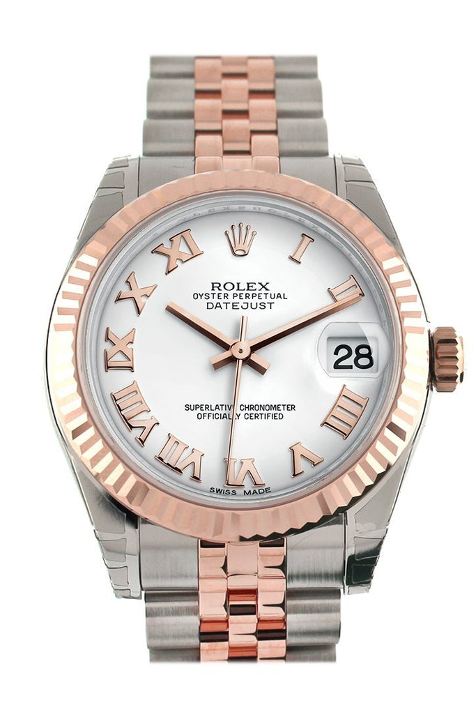 Rolex Datejust 31 White Roman Dial Fluted Bezel 18K Rose Gold Two Tone Jubilee Ladies Watch 178271