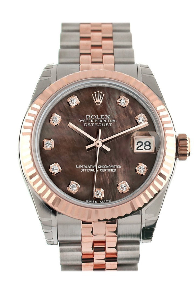 Rolex Datejust 31 Chocolate Roman Large VI set with Diamond Dial Fluted Bezel 18K Rose Gold Two Tone Jubilee Ladies Watch 178271