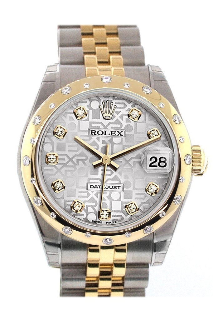 Rolex Datejust 31 Silver Diamond Dial Diamond Bezel 18K Gold Two Tone Jubilee Ladies 178343