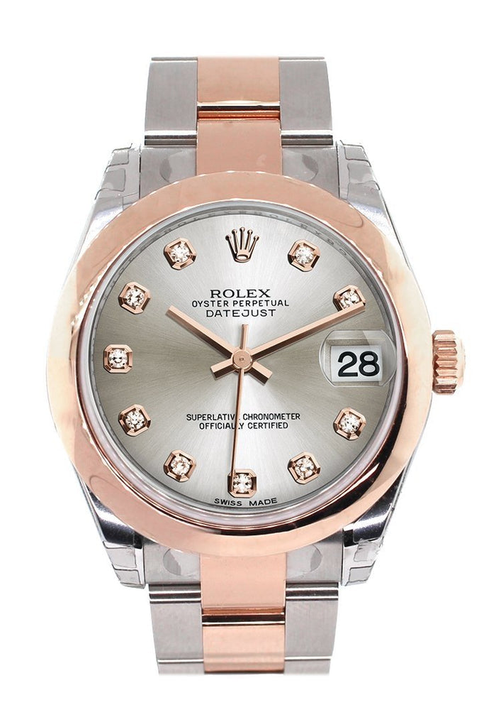 Rolex Datejust 31 Silver Diamond Dial 18K Rose Gold Two Tone Ladies Watch 178241