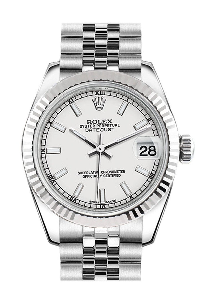 Rolex Datejust 31 White Roman Dial White Gold Fluted Bezel Jubilee Ladies Watch 178274
