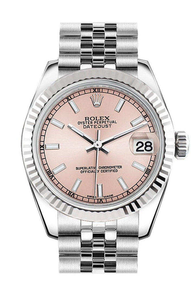 Rolex Datejust 31 Pink Dial White Gold Fluted Bezel Jubilee Ladies Watch 178274