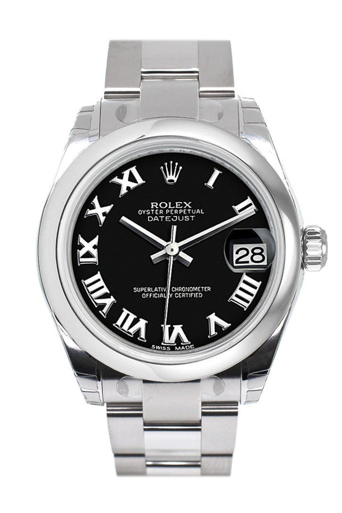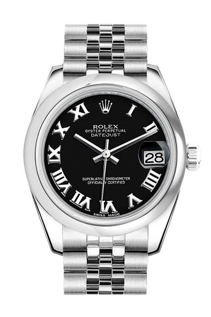 Rolex Datejust 31 Black Roman Dial Stainless Steel Jubilee Ladies Watch 178240