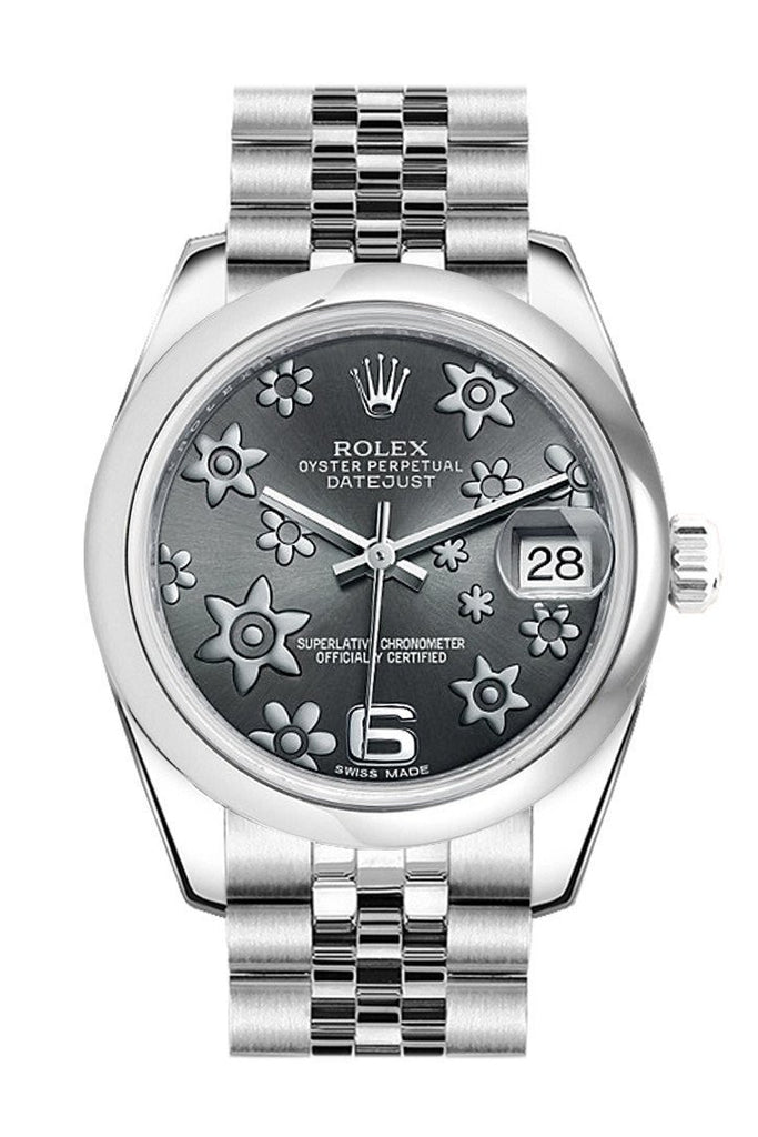 Rolex Datejust 31 Dark Rhodium Raised Floral Motif Dial Stainless Steel Jubilee Ladies Watch 178240