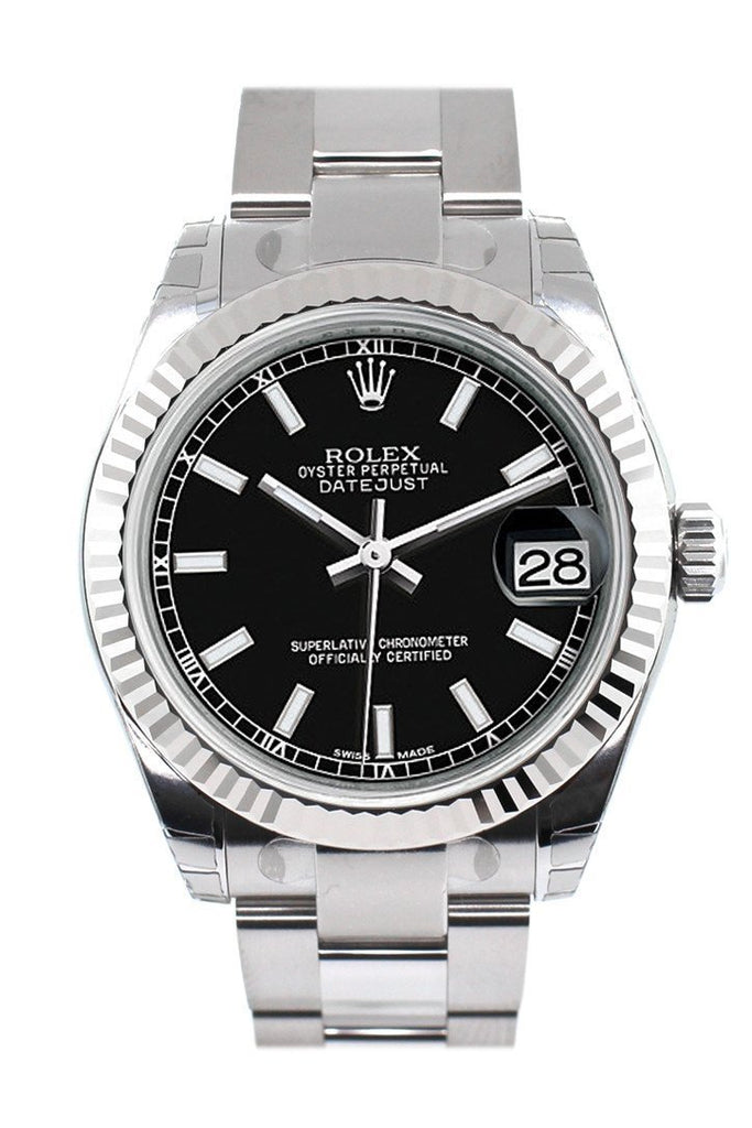 Rolex Datejust 31 Black Dial White Gold Fluted Bezel Ladies Watch 178274