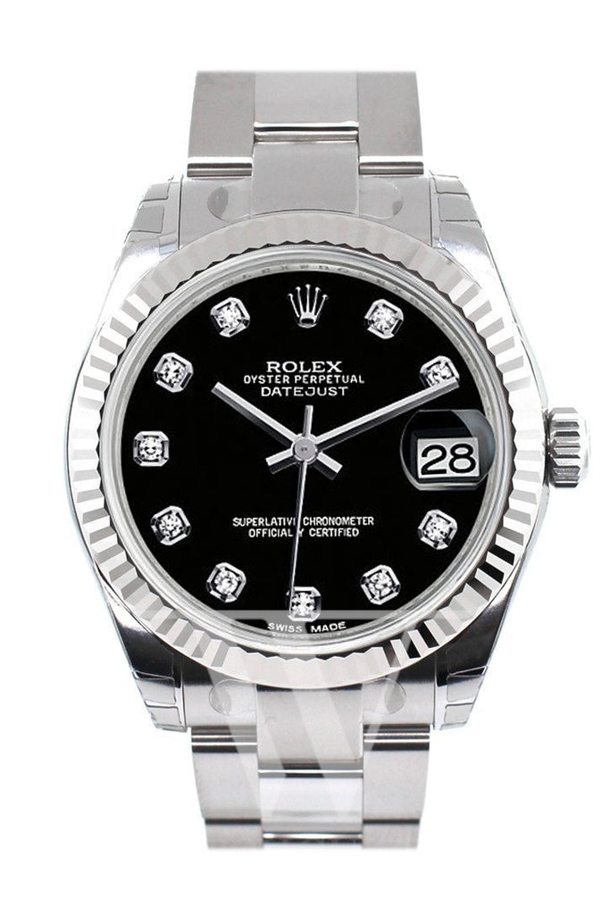 Rolex Datejust 31 Black Diamond Dial Dome set with Diamonds Bezel Ladies Watch 178344