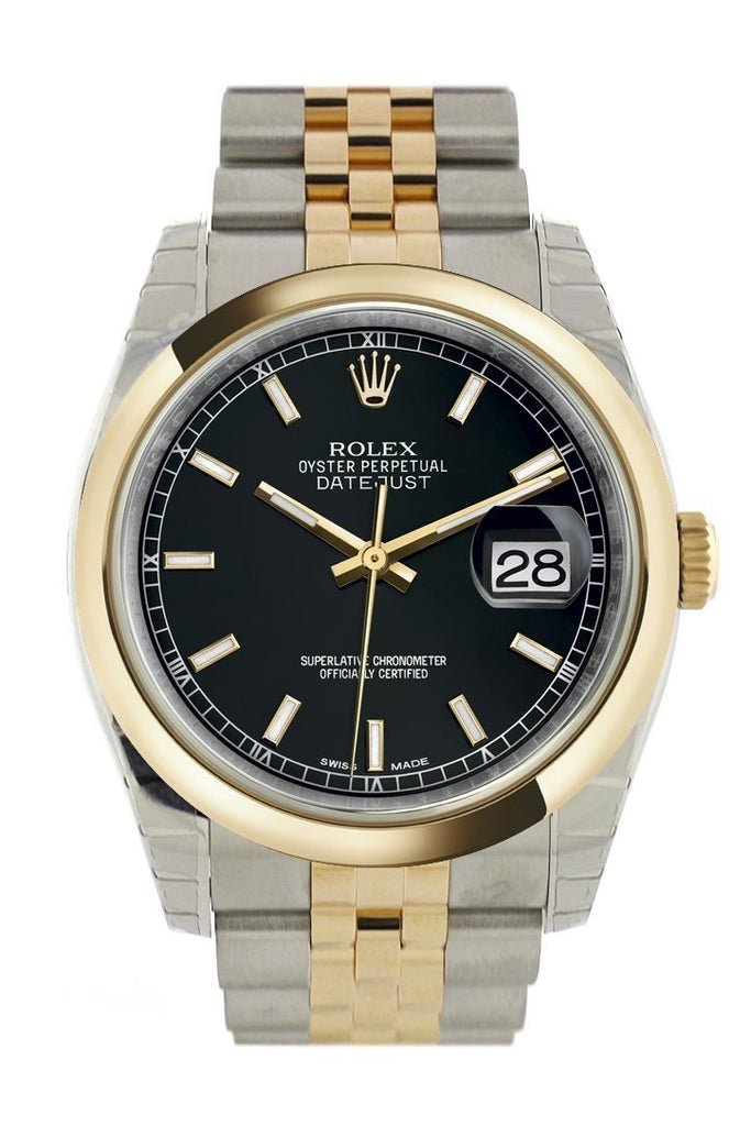 Rolex Datejust 36 Black Dial 18k Gold Two Tone Jubilee Watch 116203
