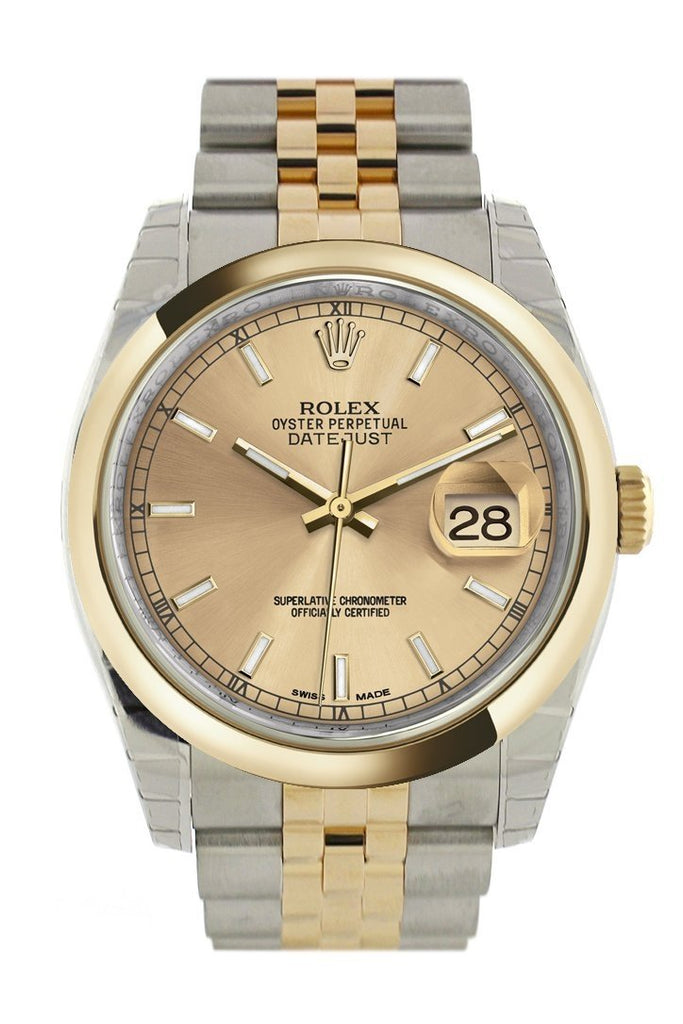 Rolex Datejust 36 Champagne Dial 18k Gold Two Tone Jubilee Watch 116203