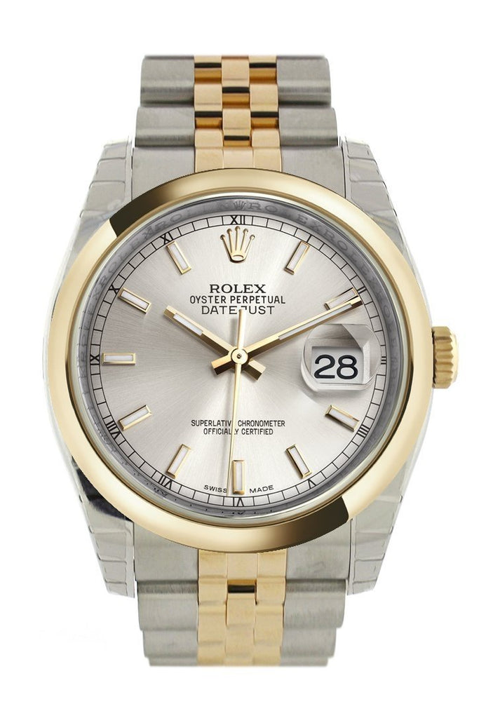 Rolex Datejust 36 Silver Dial 18k Gold Two Tone Jubilee Watch 116203