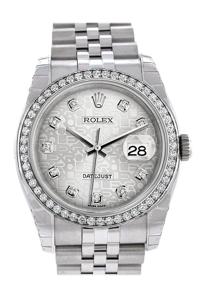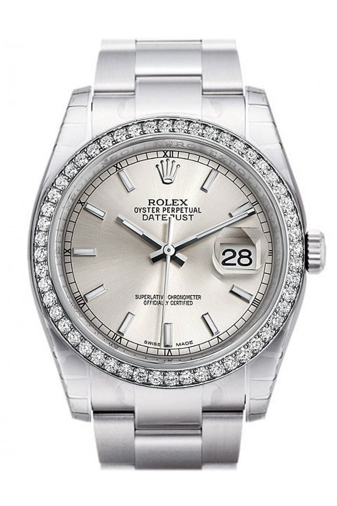 Rolex Datejust 36 Silver Dial 18k White Gold Diamond Bezel Men's Watch 116244