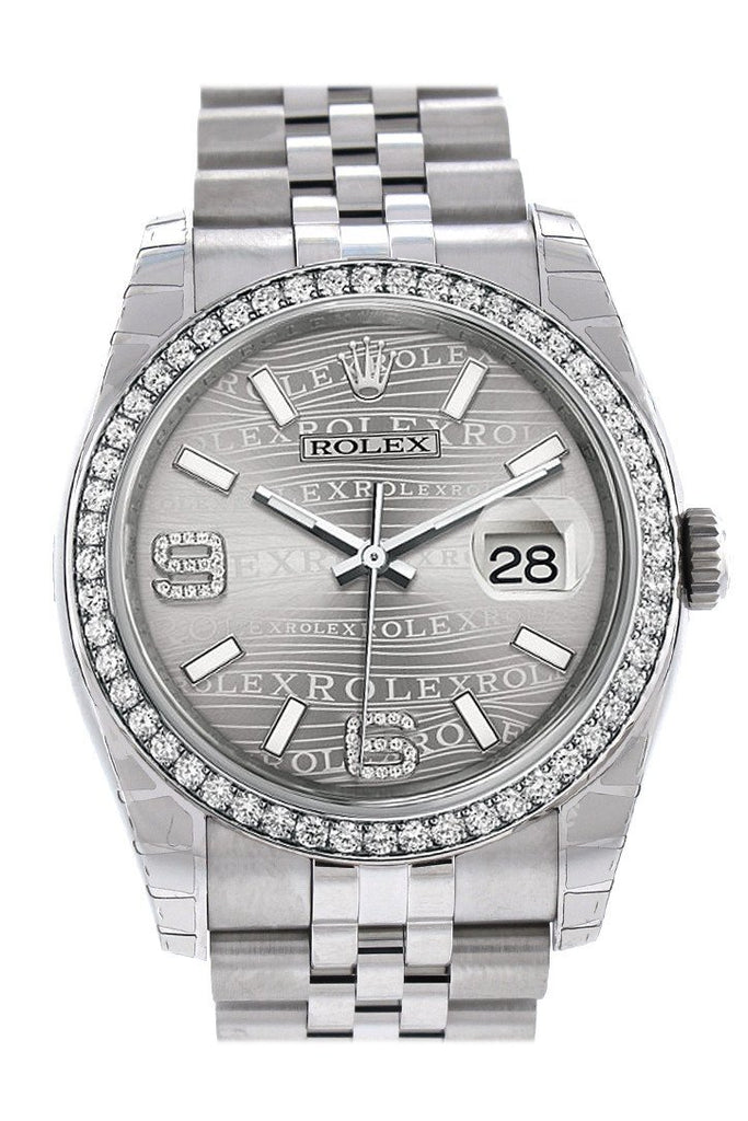 Rolex Datejust 36 Rhodium Waves Diamond Dial 18k White Gold Diamond Bezel Jubilee Men's Watch 116244