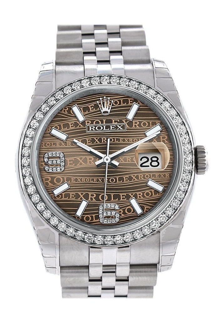 Rolex Datejust 36 Bronze Waves set with Diamonds Dial 18k White Gold Diamond Bezel Jubilee Men's Watch 116244
