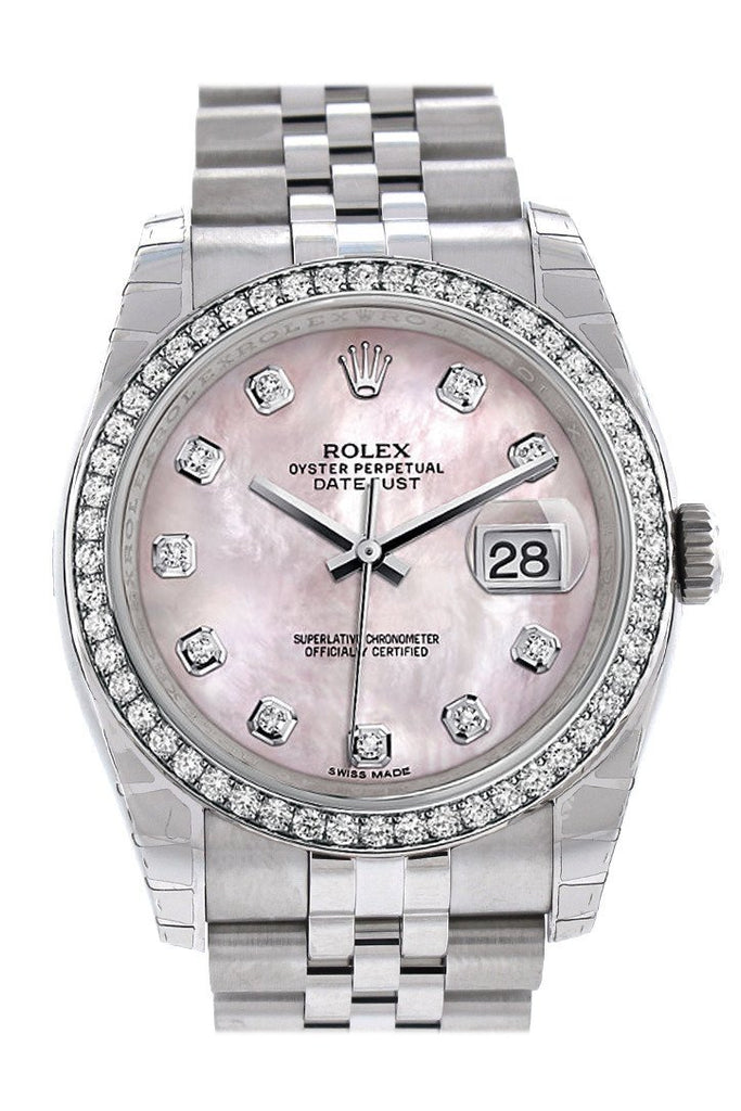 Rolex Datejust 36 Pink Mother-of-pearl set with Diamonds Dial 18k White Gold Diamond Bezel Jubilee Men's Watch 116244