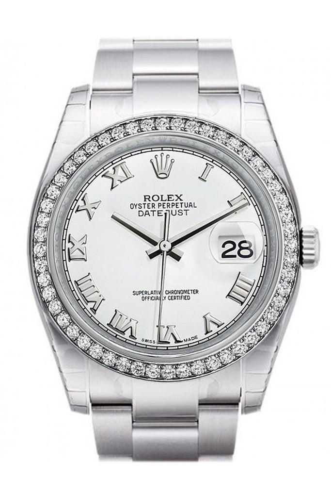 Rolex Datejust 36 White Roman Dial 18k White Gold Diamond Bezel Men's Watch 116244