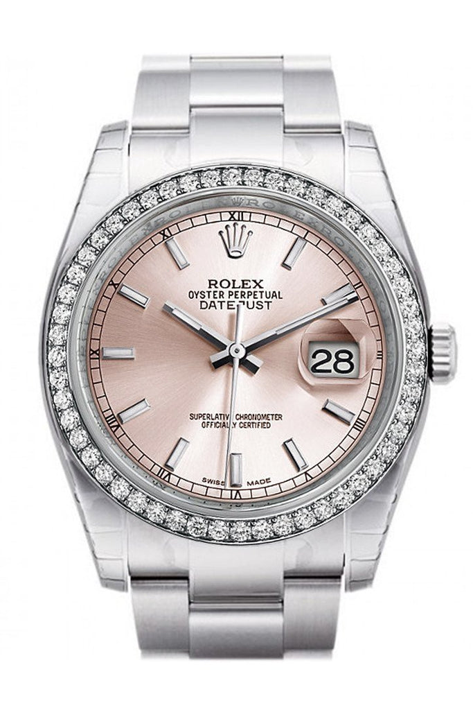 Rolex Datejust 36 Pink Dial 18k White Gold Diamond Bezel Men's Watch 116244