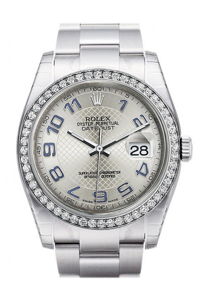 Rolex Datejust 36 Silver Arab Dial 18k White Gold Diamond Bezel Men's Watch 116244