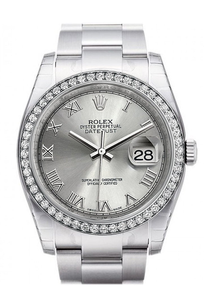 Rolex Datejust 36 Rhodium Roman Dial 18k White Gold Diamond Bezel Men's Watch 116244