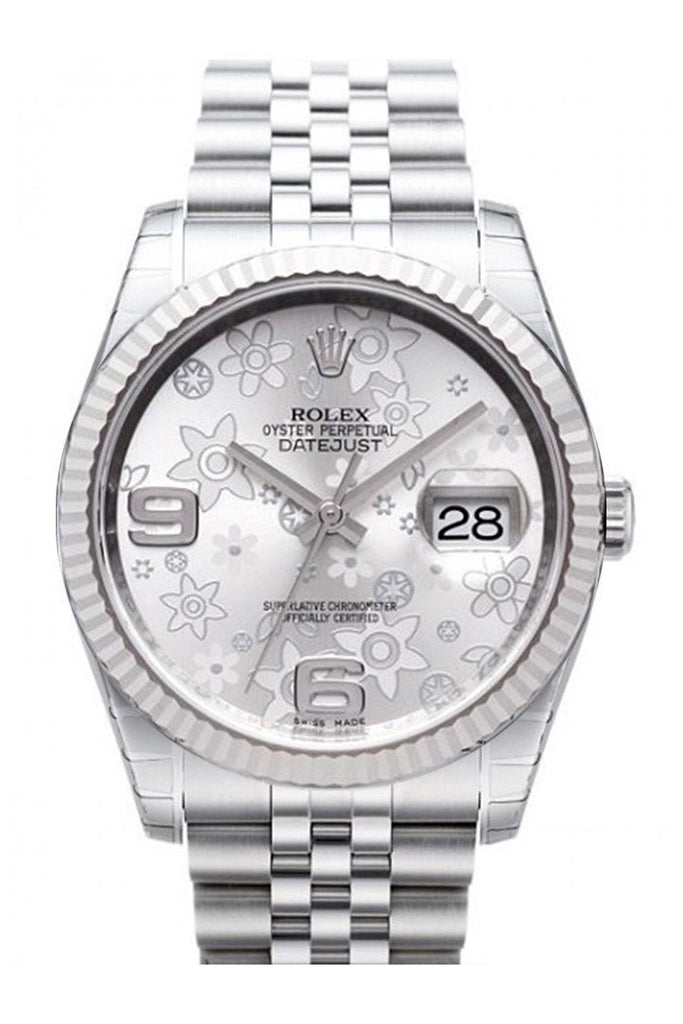 Rolex Datejust 36 Silver Floral Dial Stainless Steel Automatic Ladies Watch 116200