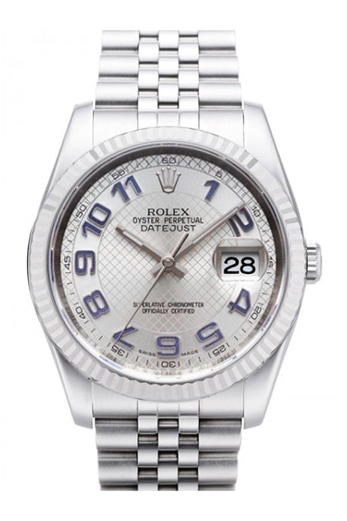 Rolex Datejust 36 Silver Dial 18k White Gold Fluted Bezel Stainless Steel Jubilee Watch 116234