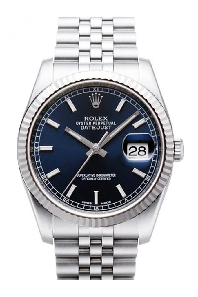 Rolex Datejust 36 Blue Roman Dial 18k White Gold Fluted Bezel Stainless Steel Jubilee Watch 116234