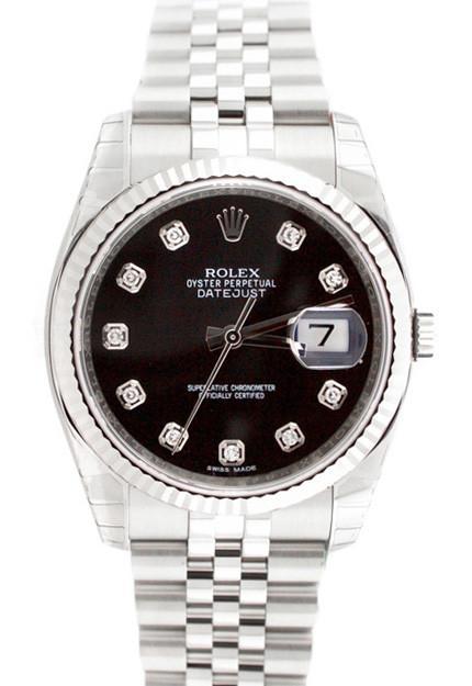 Rolex Datejust 36 Black Diamond Dial White Gold Stainless Steel Men's Watch 116234