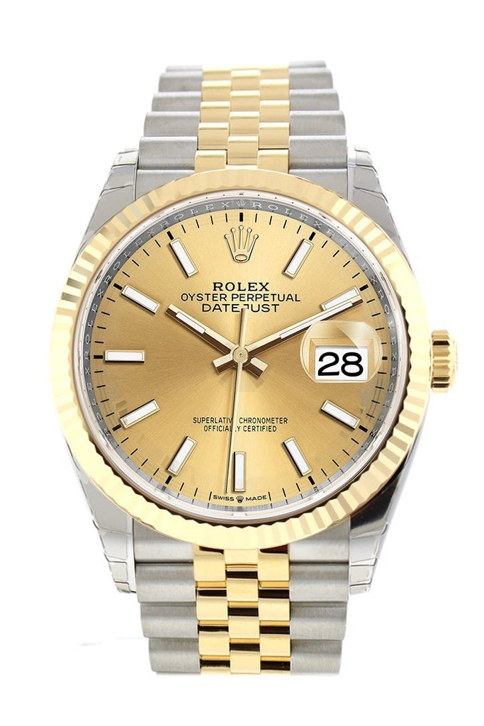 Rolex Datejust 36 Champagne-colour Dial Fluted Bezel Jubilee Yellow Gold Two Tone Watch 126233 NP
