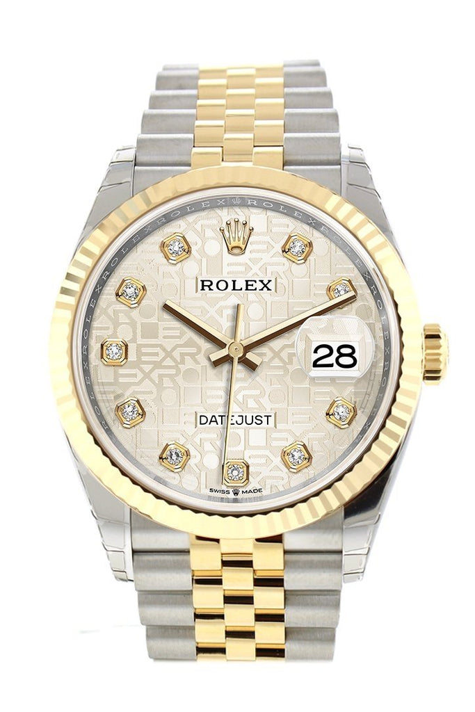 Rolex Datejust 36 Silver set with diamonds Dial Fluted Bezel Jubilee Yellow Gold Two Tone Watch 126233 NP
