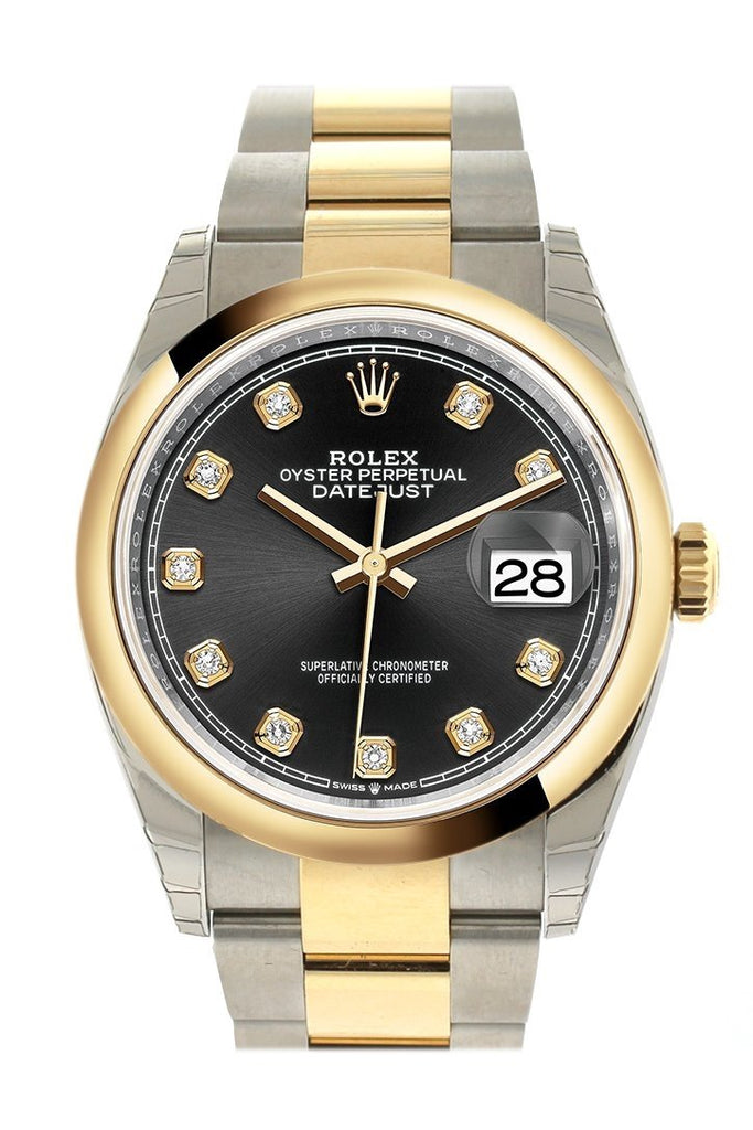 Rolex Datejust 36 Black set with diamonds Dial Dome Bezel Jubilee Yellow Gold Two Tone Watch 126203 NP
