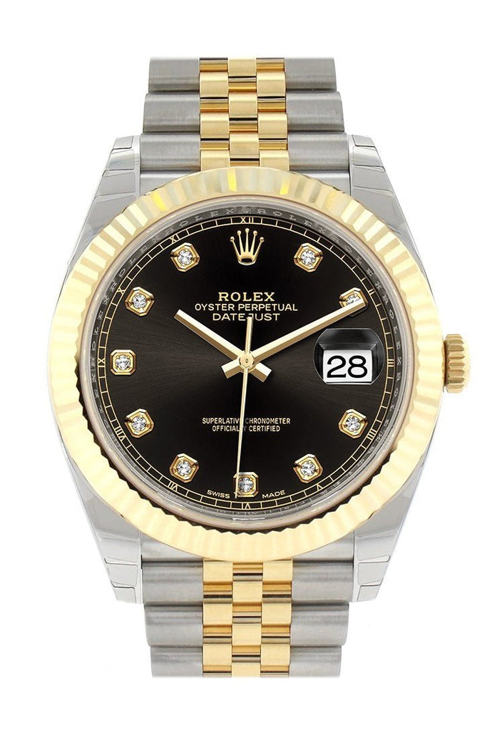 Rolex Datejust 41 Black Diamond Dial Fluted Bezel 18k Yellow Gold Jubilee Mens Watch 126333