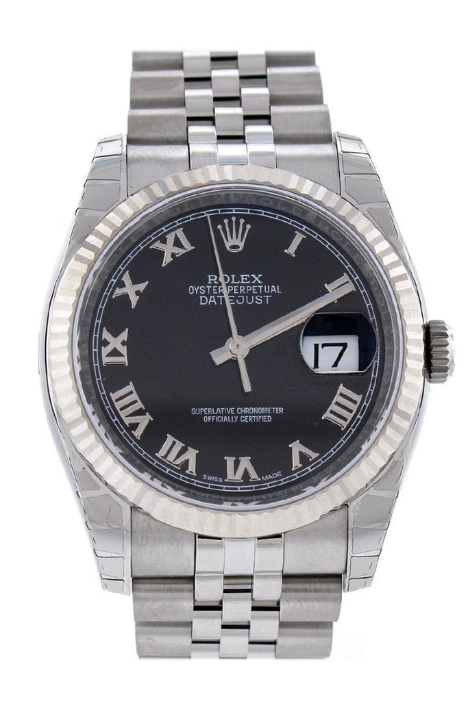 Rolex Datejust 36 Black Roman Dial Fluted Bezel Jubilee Men's Watch 116234