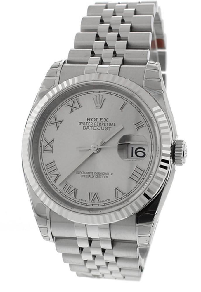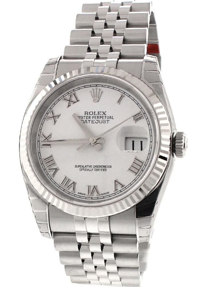 Rolex Datejust 36 Rhodium Roman Dial 18k White Gold Fluted Jubilee Unisex Watch 116234