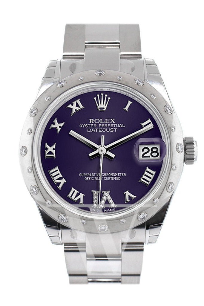 Rolex Datejust 31 Purple Roman Large VI Diamond Dial Dome set with Diamonds Bezel Ladies Watch 178344