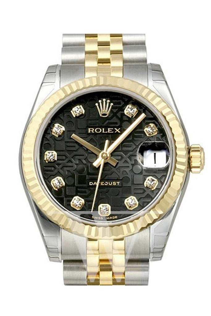Rolex Datejust 31 Black Jubilee Diamond Dial Steel and Yellow Gold Ladies Watch 178273