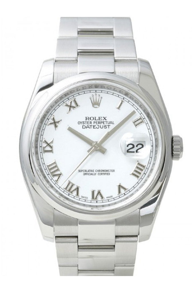Rolex Datejust 36 White Roman Dial Steel Mens Watch 116200