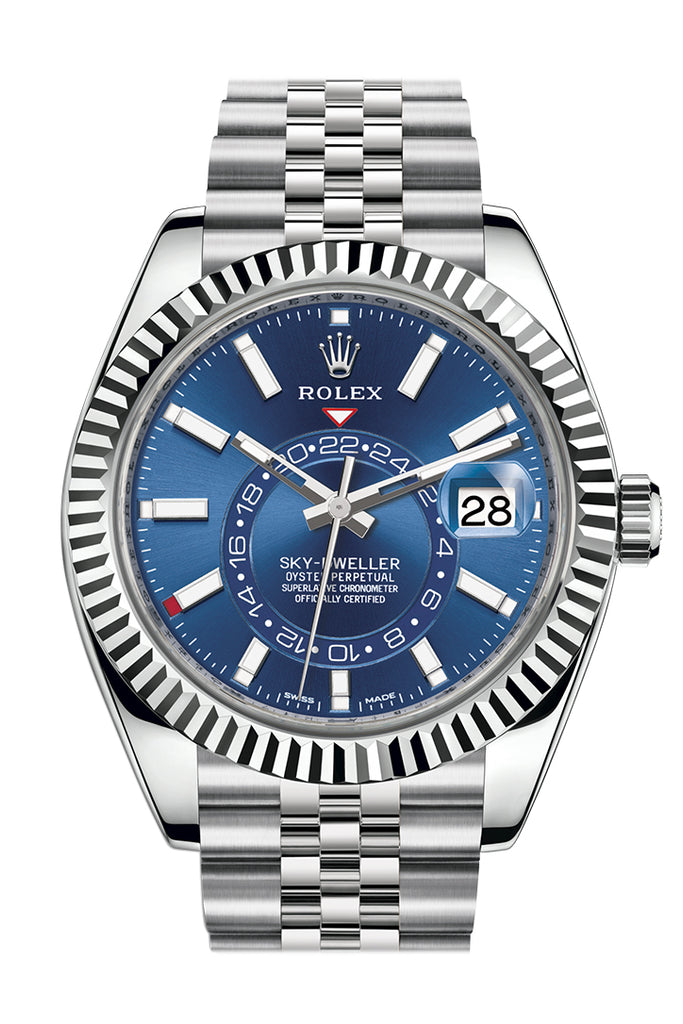 Rolex Sky Dweller Blue Dial 18K White Gold Bezel Steel Jubilee Men's Watch 326934