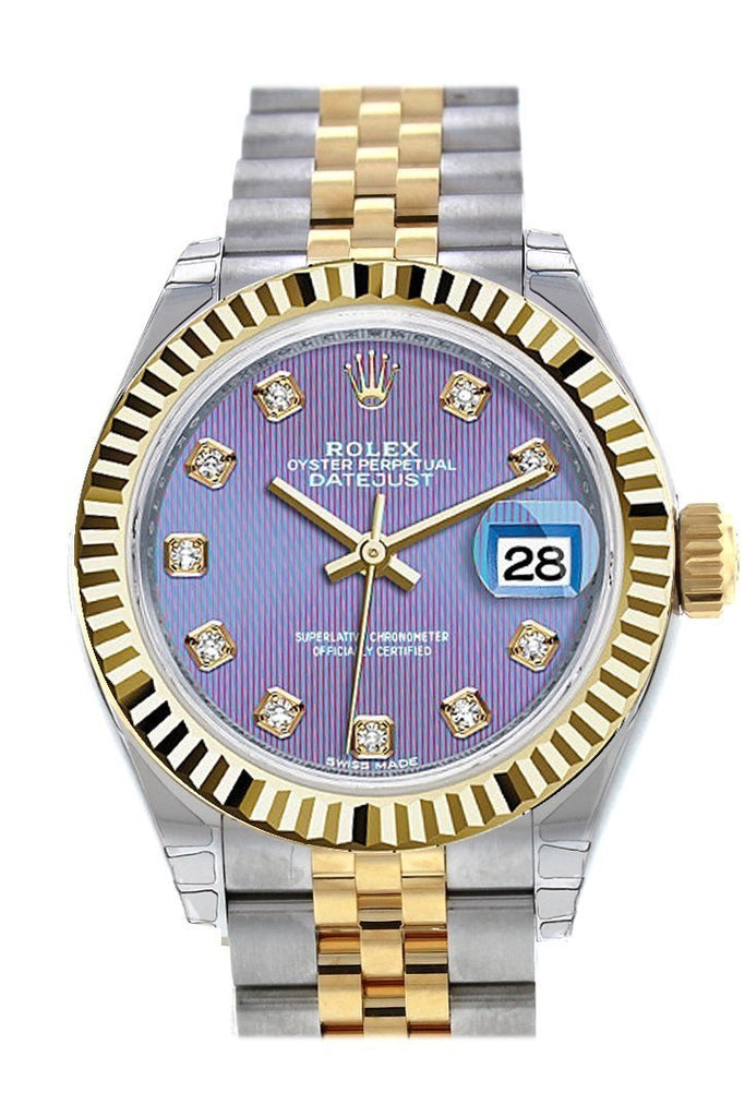 Rolex Datejust 28 Lavender Diamond Dial Fluted Yellow Gold Two Tone Jubilee Ladies Watch 279173