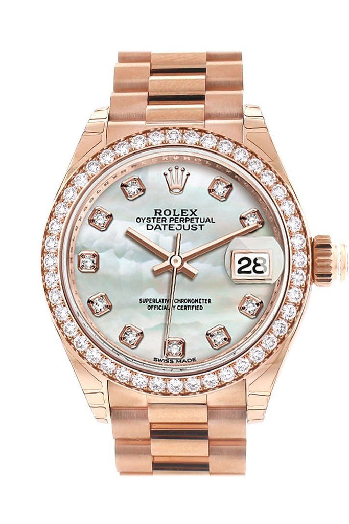 Rolex Datejust 28 Pearl set with Diamond Dial Diamond Bezel Rose Gold President Ladies Watch 279135RBR 279135 NP