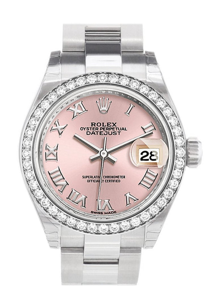Rolex Datejust 28 Pink Roman Dial Diamond Bezel Steel Ladies Watch 279384RBR NP