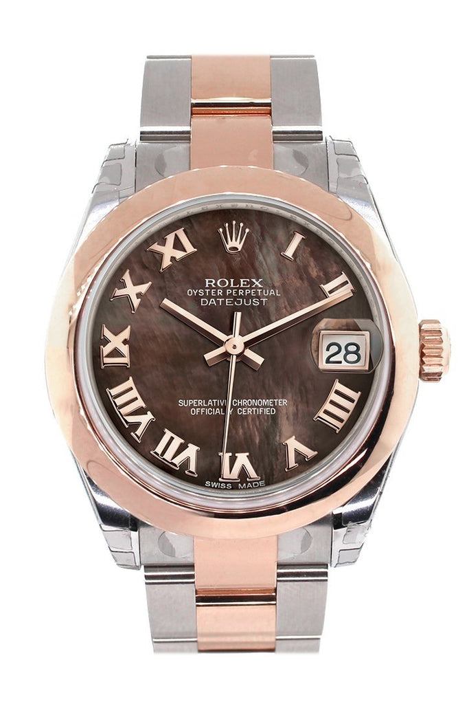 Rolex Datejust 31 Black Mother of Pearl Roman Dial 18K Rose Gold Two Tone Ladies Watch 178241