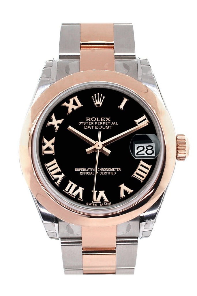Rolex Datejust 31 Black Roman Dial 18K Rose Gold Two Tone Ladies Watch 178241